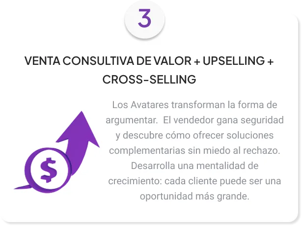 Escenarios personalizados (prospectación, upselling, objeciones, cierre).