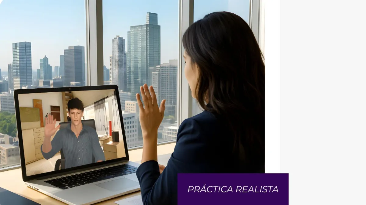 Creamos simulaciones hiperrealistas con avatares de IA donde tus vendedores y líderes comerciales pueden practicar conversaciones cruciales, desde una venta consultiva hasta dar feedback asertivo. Sin riesgos, sin juicios y con una evaluación objetiva e instantánea sobre su desempeño.